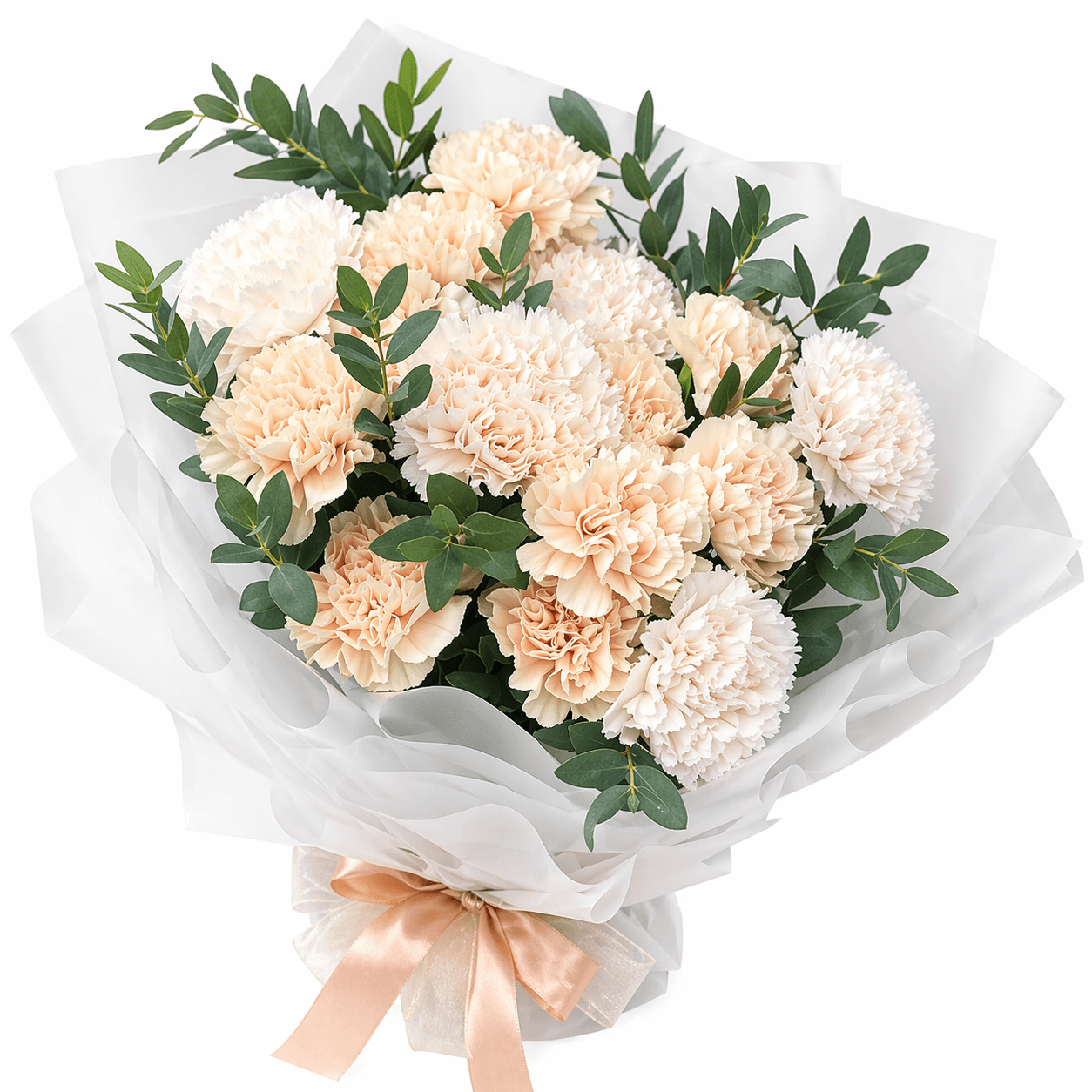 • Composition: dianthus (carnations), eucalyptus sprigs