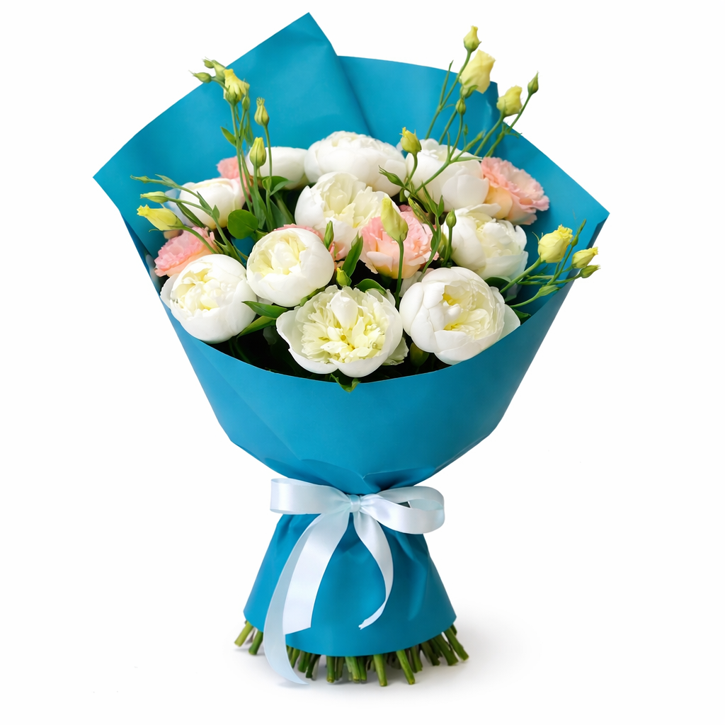 Состав: пионы — 11шт, эустома — 4 вет.
