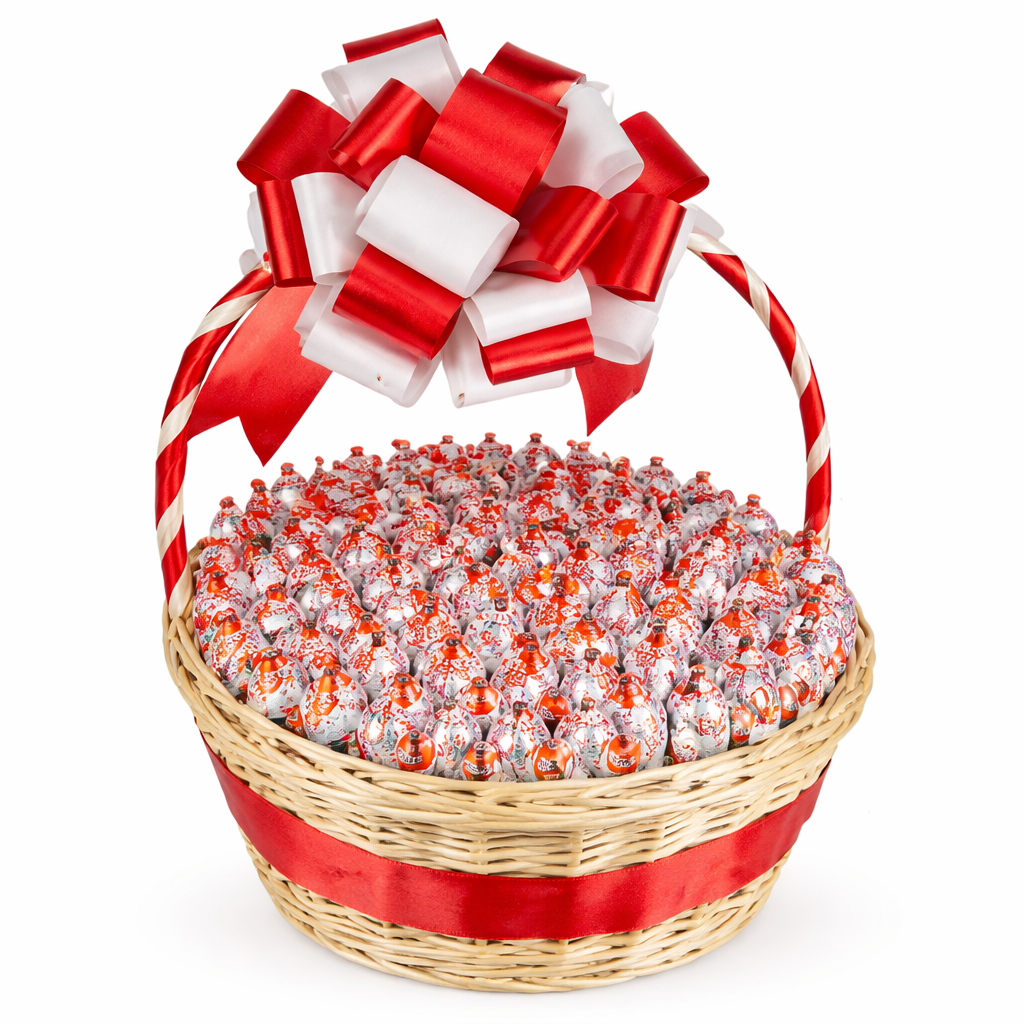 Корзина из 101 киндера декоративно оформлена, выглядит масштабно и роскошно, станет хорошим подарок на праздник, юбилей, торжество, или просто будет хорошим способом сказать «спасибо», «извини» и «люблю». Не можете подарить лично по причине расстояния? Купите корзину из 101 киндера, а наша служба доставки позаботиться о том, чтобы адресат получил ее лично в руки.