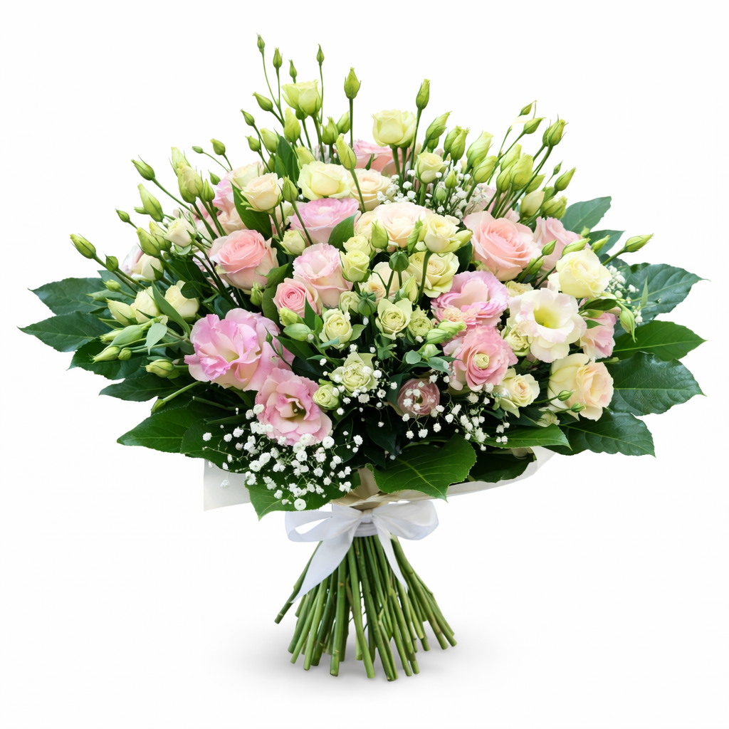 Троянди та еустоми чимось схожі між собою і тому особливо добре виглядають в одному букеті. У поєднанні із флористичною зеленню ці квіти створюють неймовірно легкі, повітряні композиції. Такі букети обов’язково сподобаються дівчатам, які люблять мріяти і завжди залишаються милими та жіночними. Одна з головних переваг композицій з еустомами – стійкість. Ці квіти зберігаються особливо довго і стають справжньою окрасою будинку терміном до кількох тижнів. Подарувати їх можна на день народження, заручини чи День усіх закоханих.